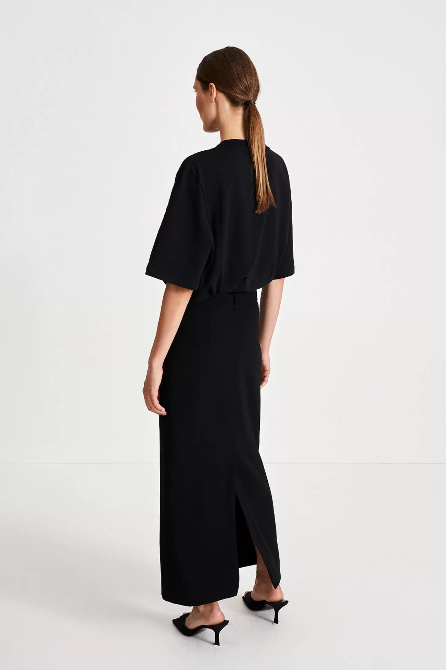 Introducing Berkley, The Perfect Office-Wear Skirt Made From Luxurious Crepe Material. The Skirt Is Calf-Length, Has A Straight Fit, And Is Fully Lined. It Features A Waistband With Wide Elastic Inside At The Back, Ensuring A Tailored Fit. The Skirt Has A Discreet Slit At The Back And Closes With A Zipper. Style The Berkley Skirt With A Blazer For A Dressier Look Or With A T-Shirt For A More Casual Outfit.