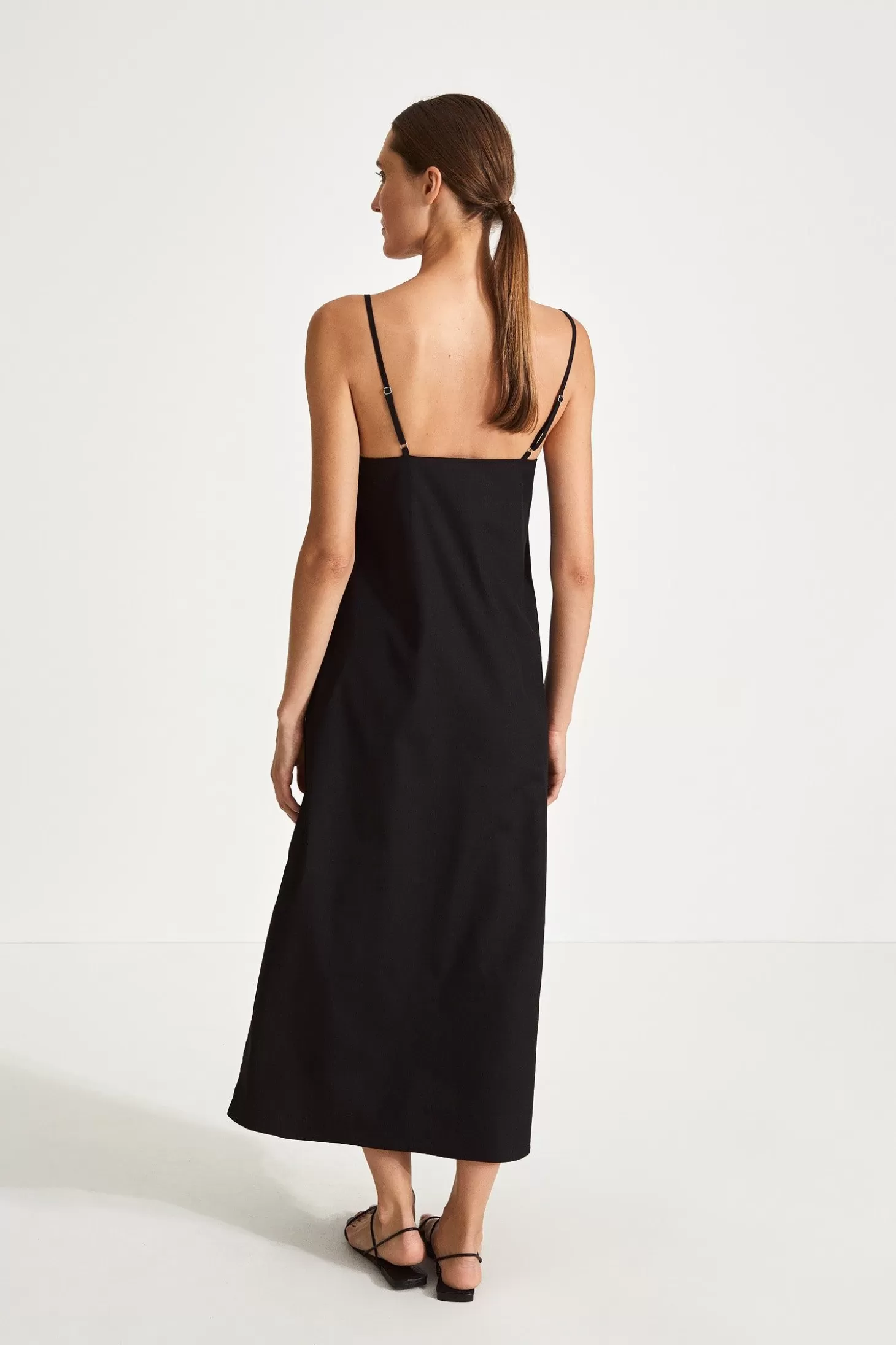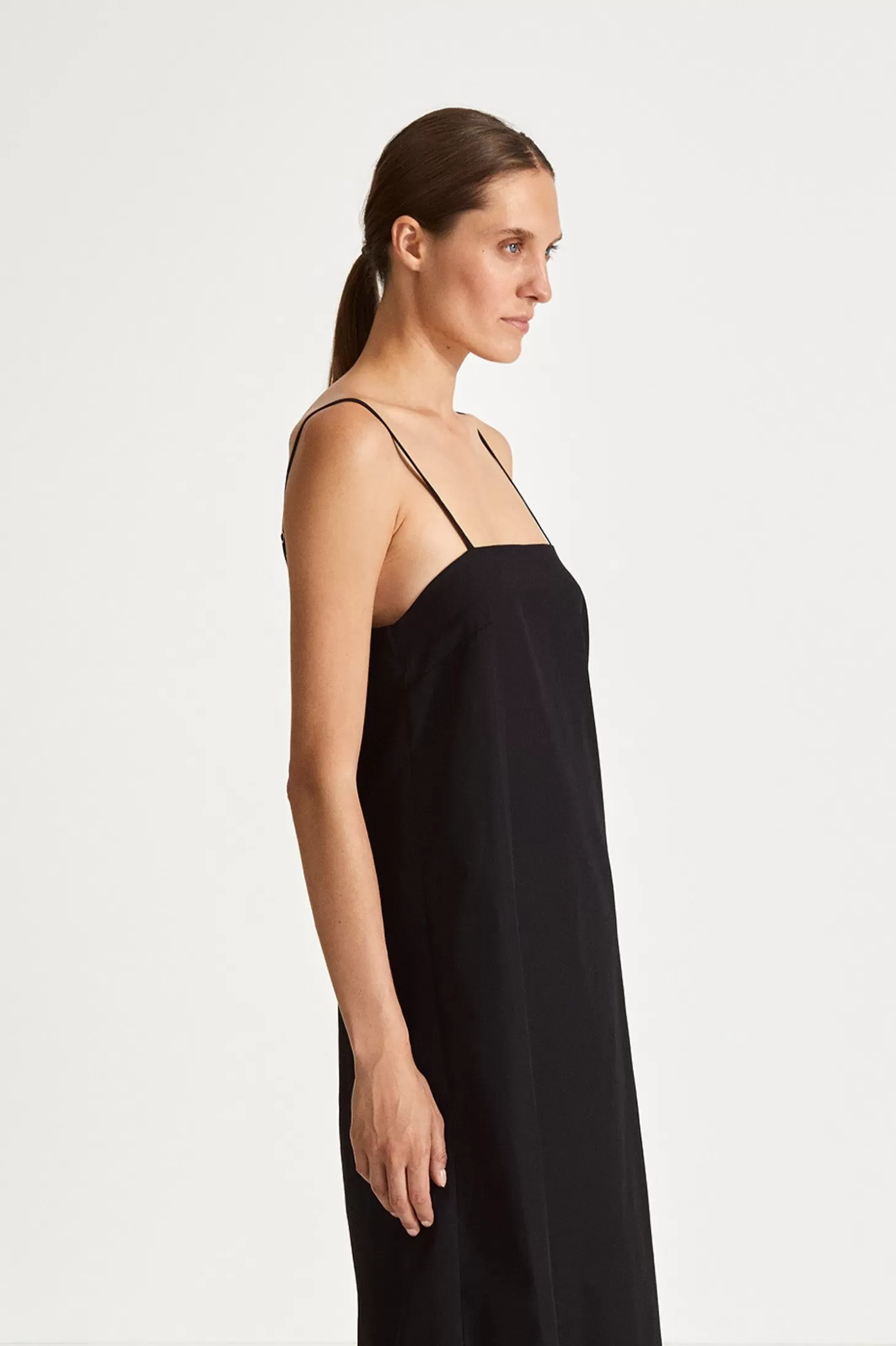 Introducing Cori, A Sophisticated Ankle-Length Dress Crafted From Luxurious Viscose Jersey. This Loose-Fitting Silhouette Features A Straight Neckline At The Front And Back. Partially Lined And Completed With Delicate Rouleau Shoulder Straps For A Minimalistic Look.