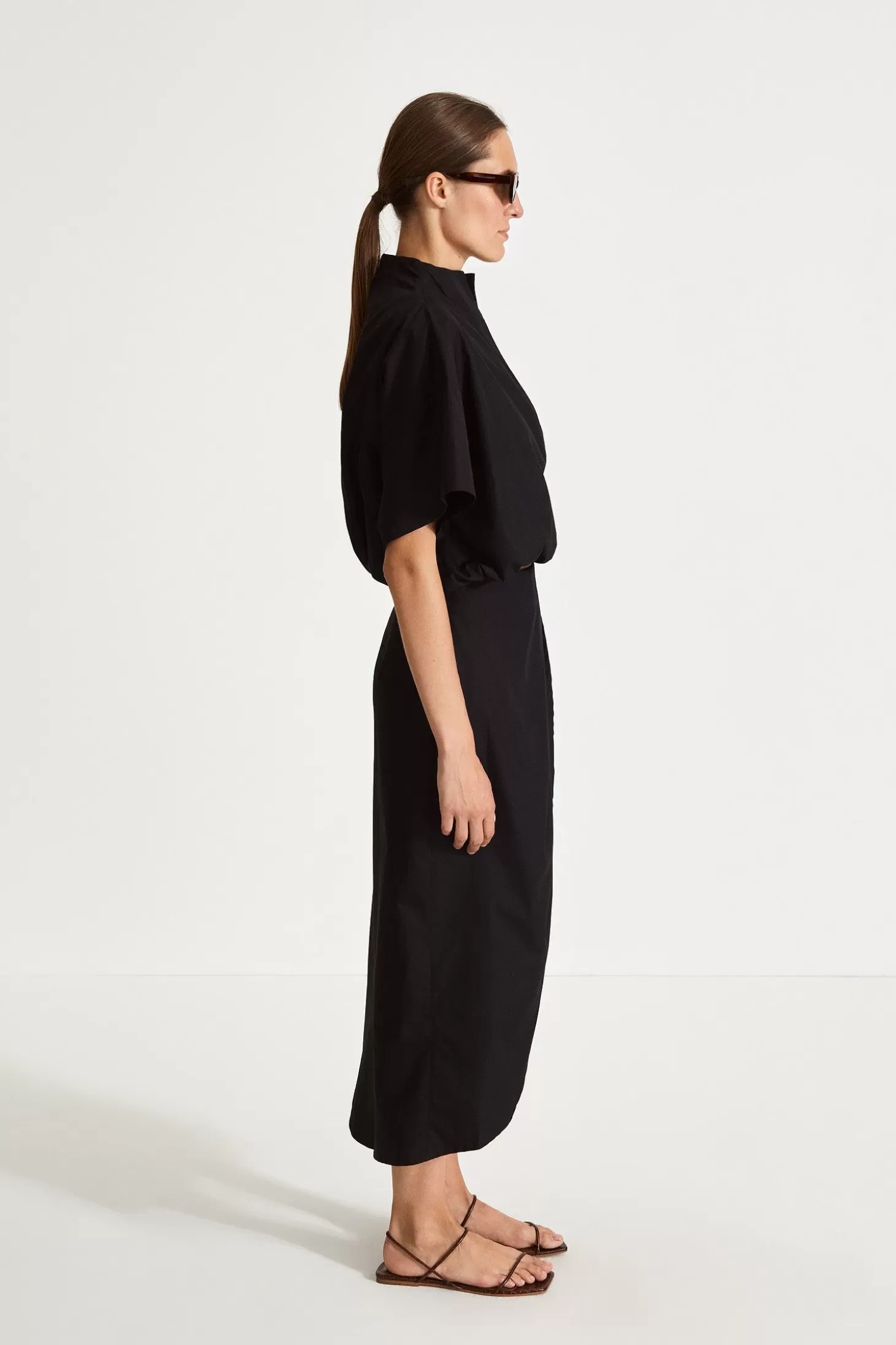 The Joelyn Skirt Is Crafted From A Crisp Cotton Fabric. Meticulously Designed, This Mid-Length Skirt Boasts A Flattering Draped Front And Discreet Darts At The Back. Embodying Both Style And Practicality, The Discreetly Placed Hidden Zipper Along The Left Seam Ensures A Seamless Closure, While An Elastic Band Waist Offers Comfort Without Compromising On Style.