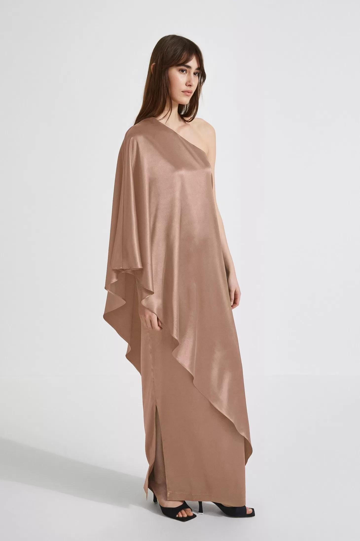 Magdalena Is A Straight Fitted One Shoulder Dress In Full Length Featuring A Draping Detail And Slit Along The Right Sid…