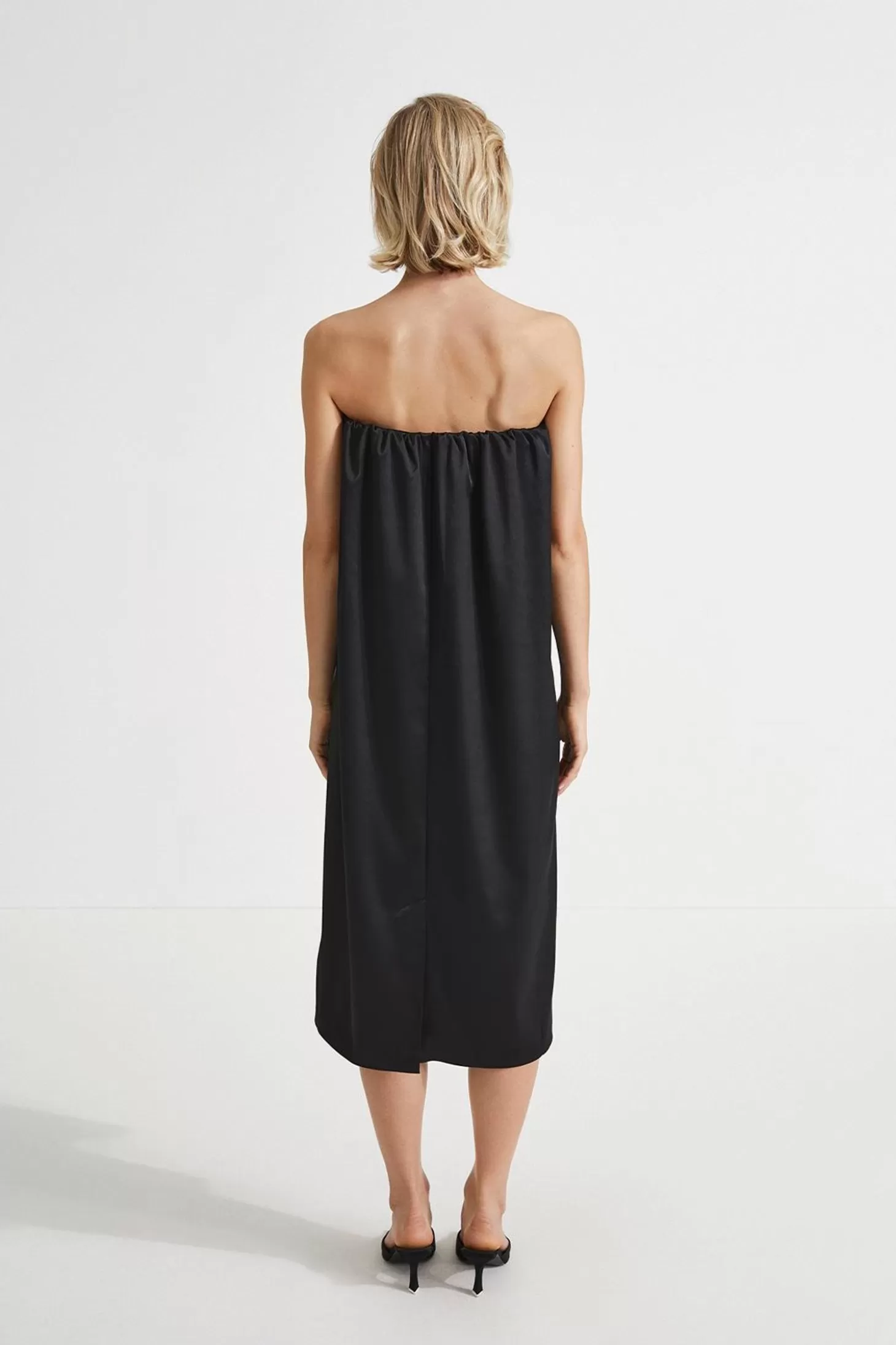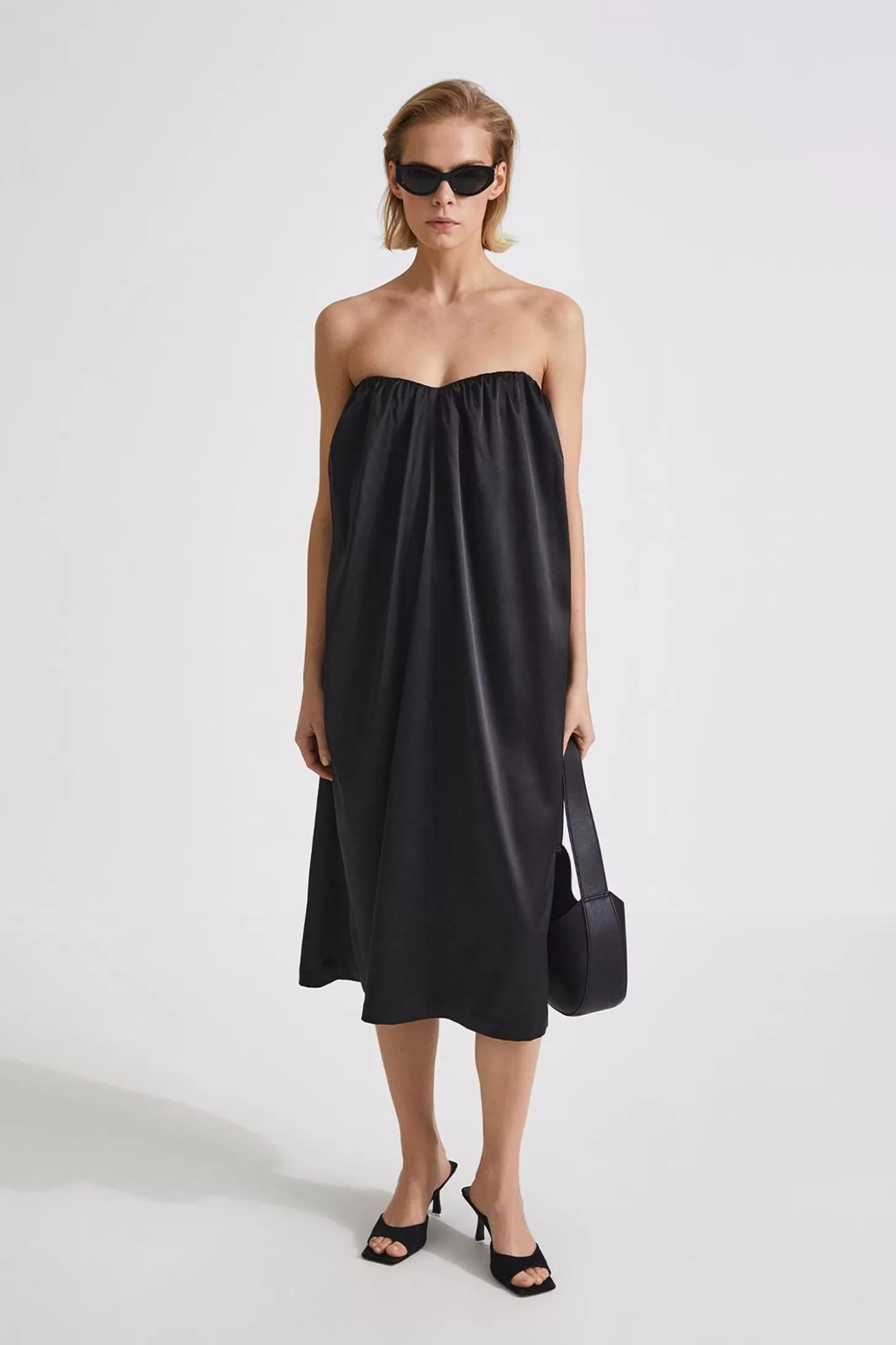 If You Want An Eye-Catching Look, This Is It. Mele Dress Is An Elegant Bandeau Dress Featuring A Heart-Shaped Bust And Gathered Details That Create A Flattering Silhouette. Made From A Shiny Garment, It Also Boasts A Hidden Elastic Detail At The Back For Extra Comfort. Style It With A Pair Of Of Heeled Sandals And You’Re Ready For Any Festivities This Upcoming Season.