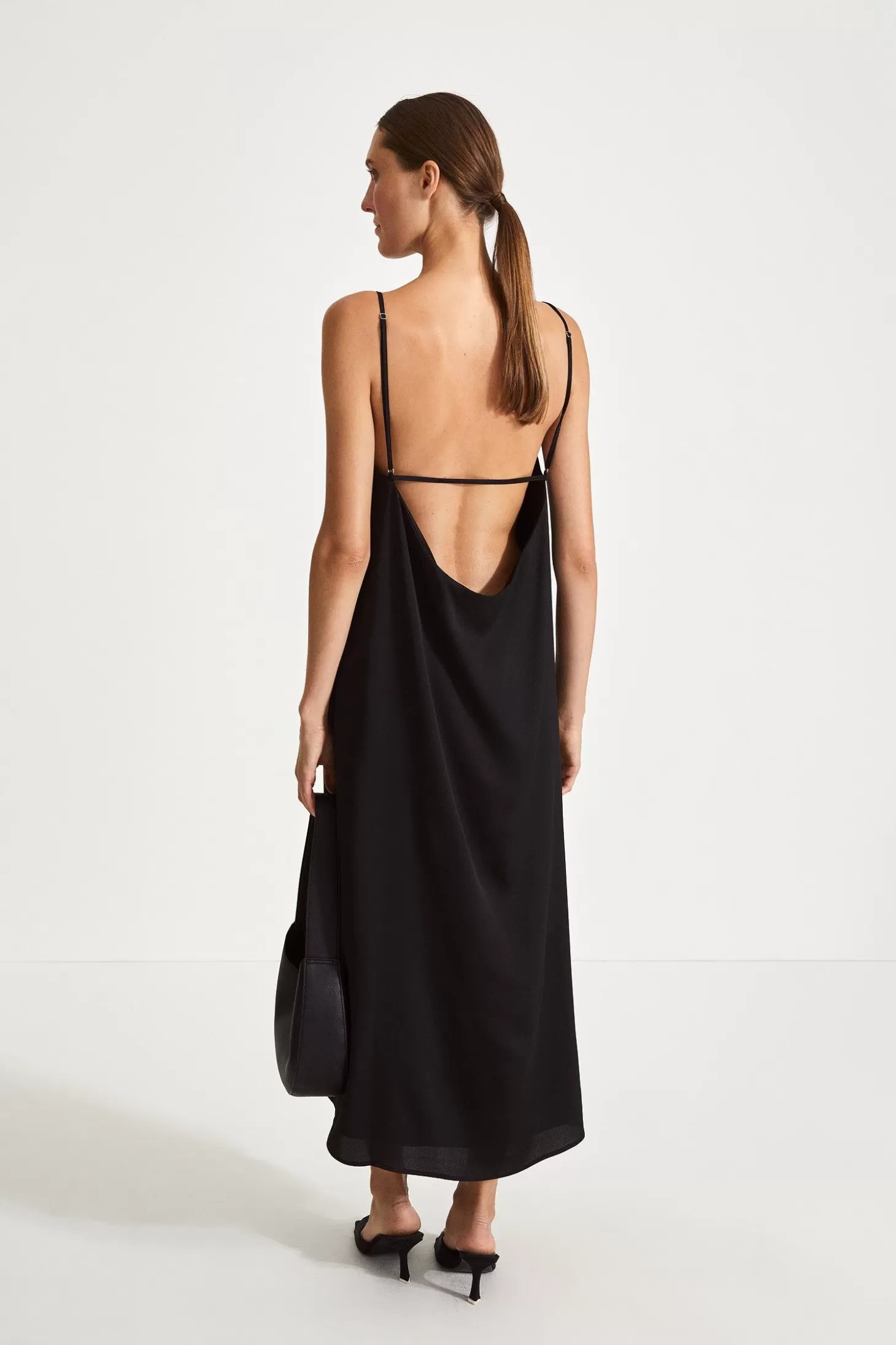 Melody Dress Is Crafted From Luxurious Matt Chiffon. The Ankle Length Slip Dress Is Fully Lined And Has Adjustable Straps That Ensures A Perfect Fit. The Melody Dress Features A Square Neckline At The Front And A Deep Cowl Neckline At The Back Adorned With A Horizontal Strap, Perfect For Any Festive Occasion.