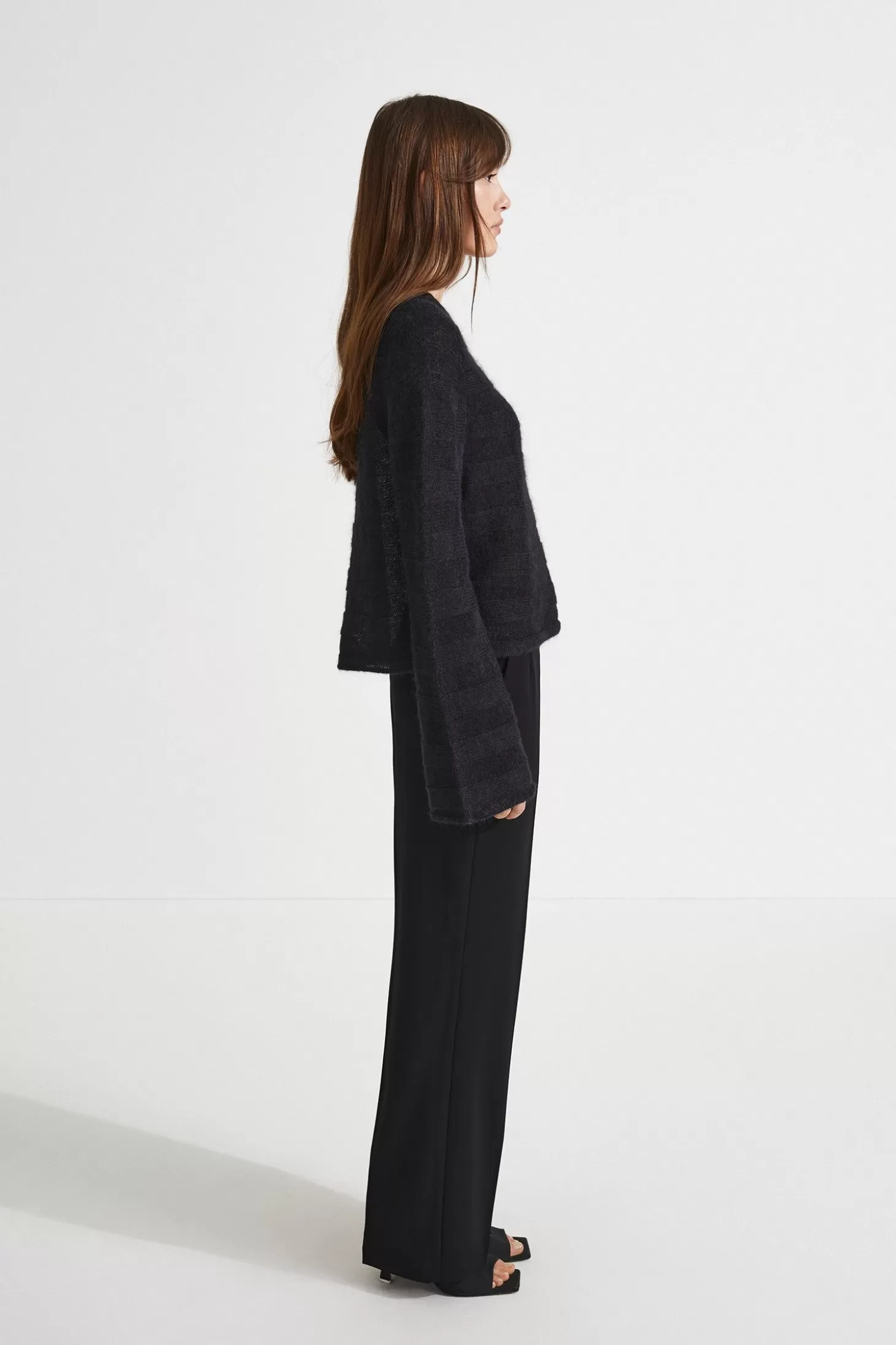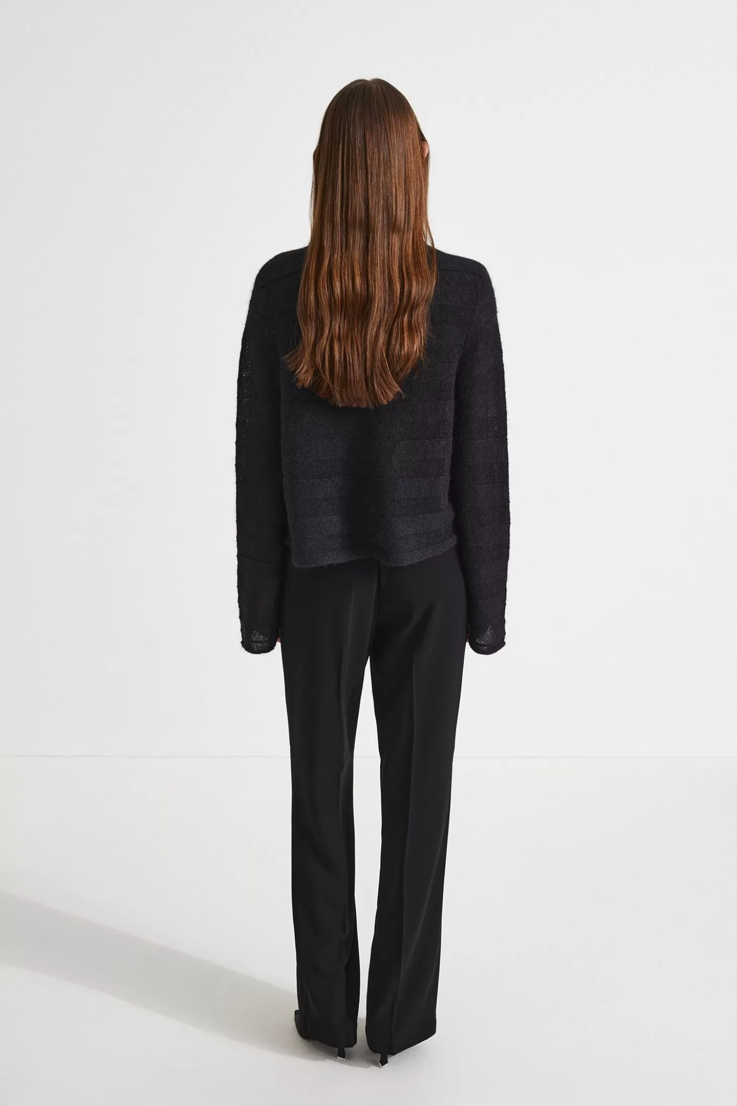 Nilo Is A Flattering Top In Cropped Length And Straight Fit Made In Mohair Blend Featuring A Horizontal Knitted Rib, Rounded Neckline, Full Length Sleeves And A Small Embroidery With Our Stylein Logo On Front Left. Perfect To Style With A Pair Of High Waisted Skirt Or Denim.