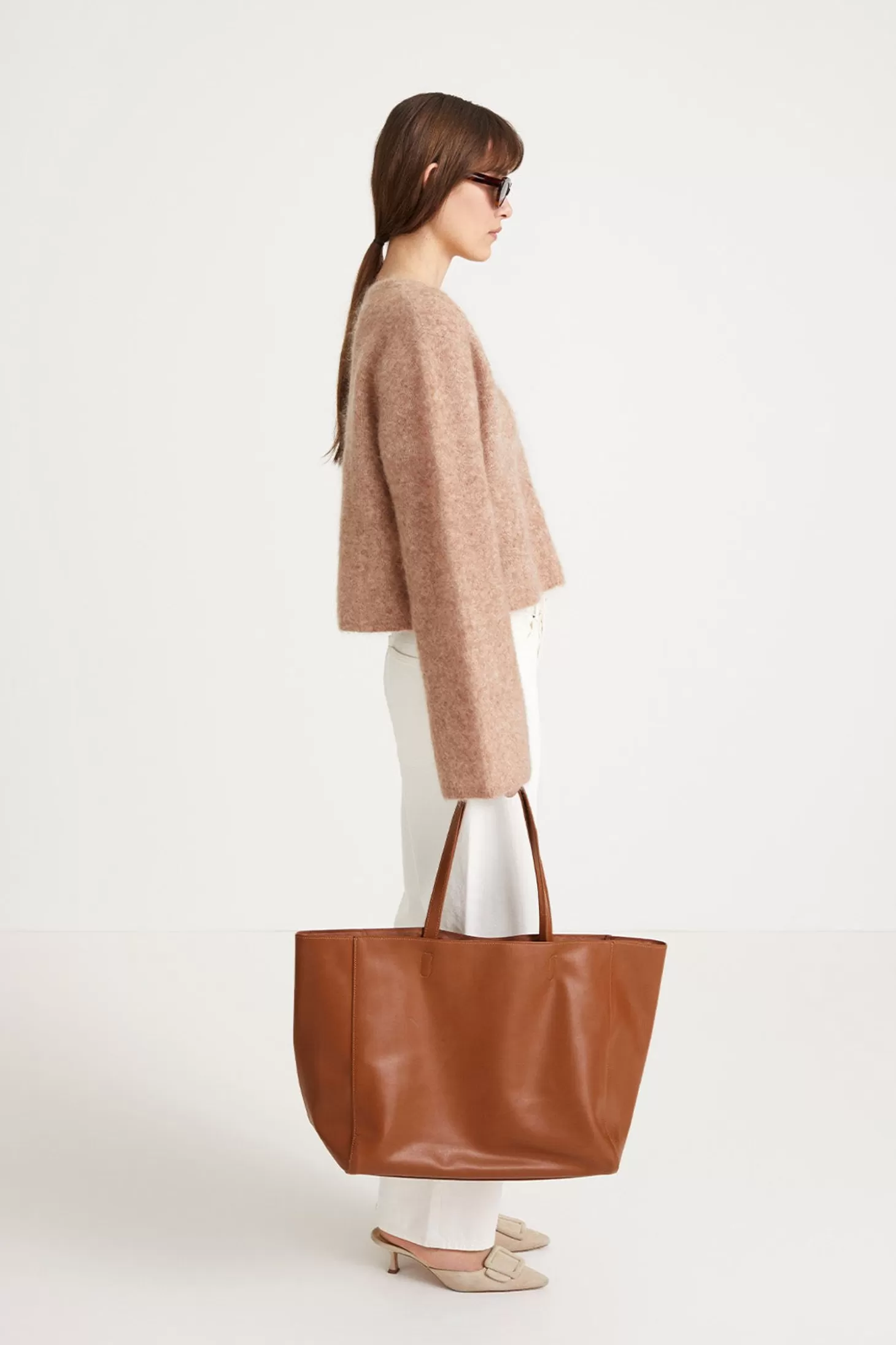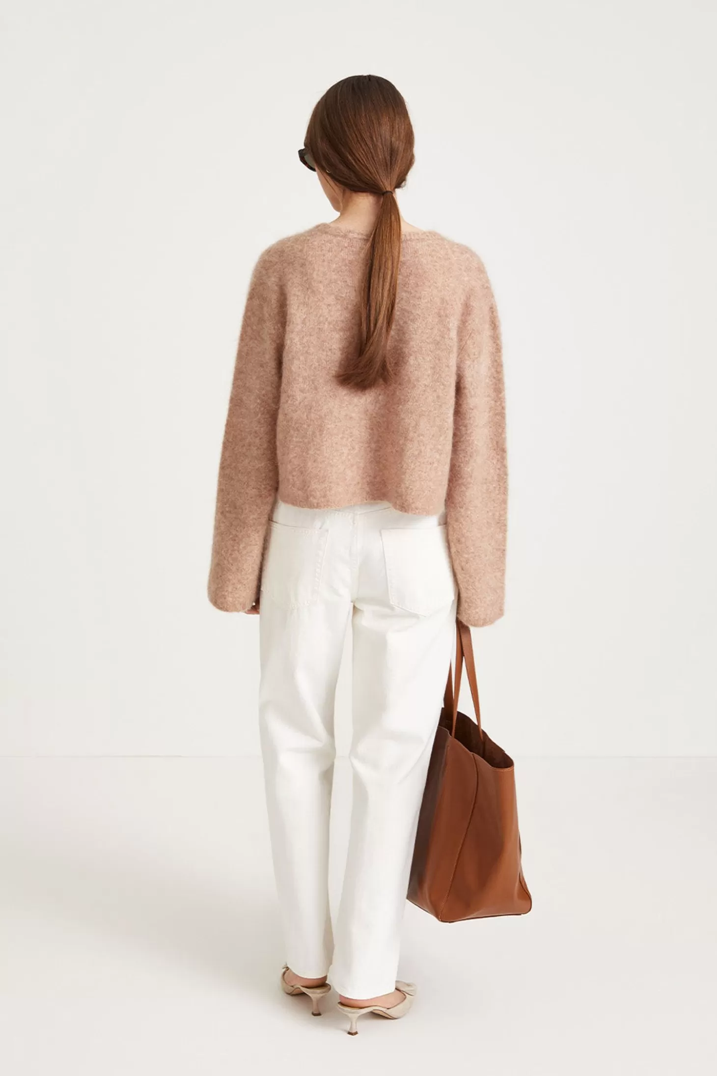 Nima Is A Flattering Top In Cropped Length And Straight Fit Made In Mohair Blend. It Is Plain Knitted With A Rounded Neckline And Full Length Sleeves Perfect To Style With A Pair Of High Waisted Skirt Or Denim.