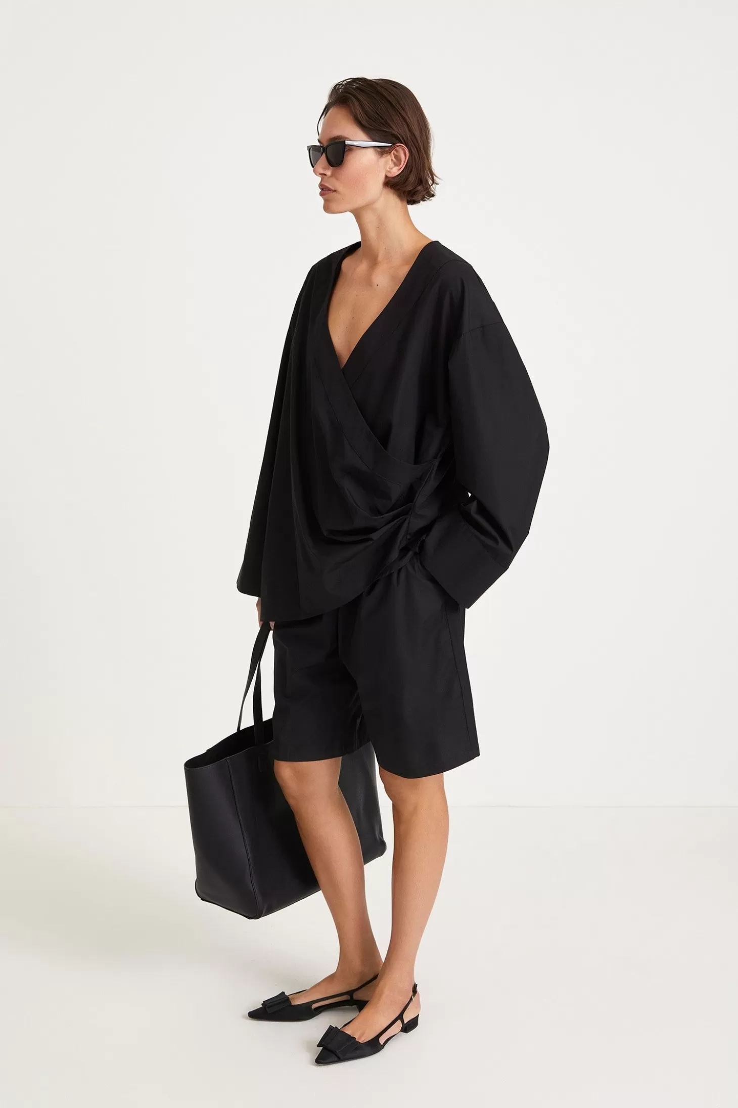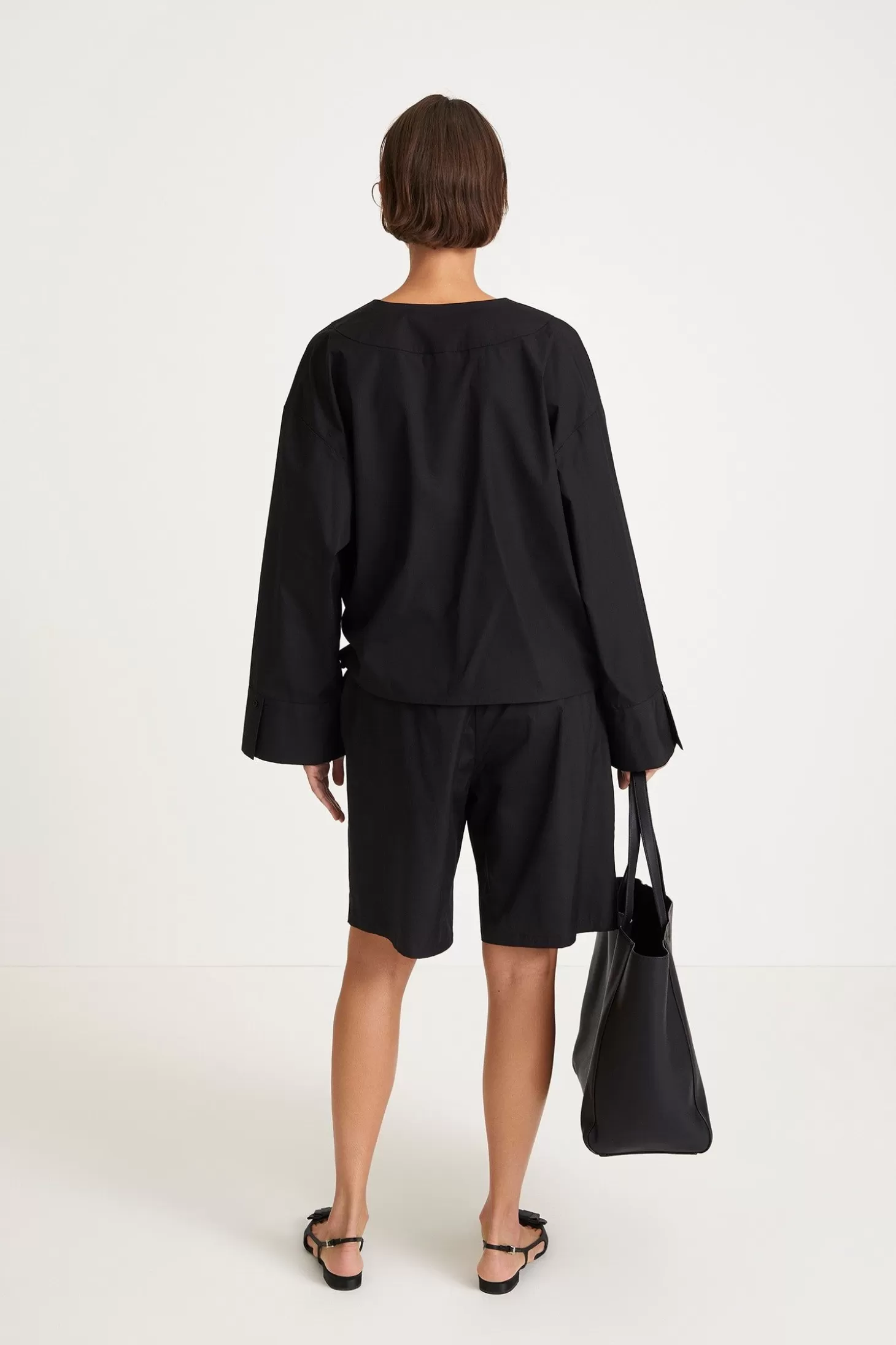 Meet Johnny: Our Voluminous Shirt Crafted From Luxurious Organic Cotton. Designed With A Flattering V-Neckline And Elegant Overlapping Front Panels Adorned With Pleats. The Johnny Shirt Features Long Sleeves With Chic Wide Cuffs, Each Secured With A Single Button Closure.