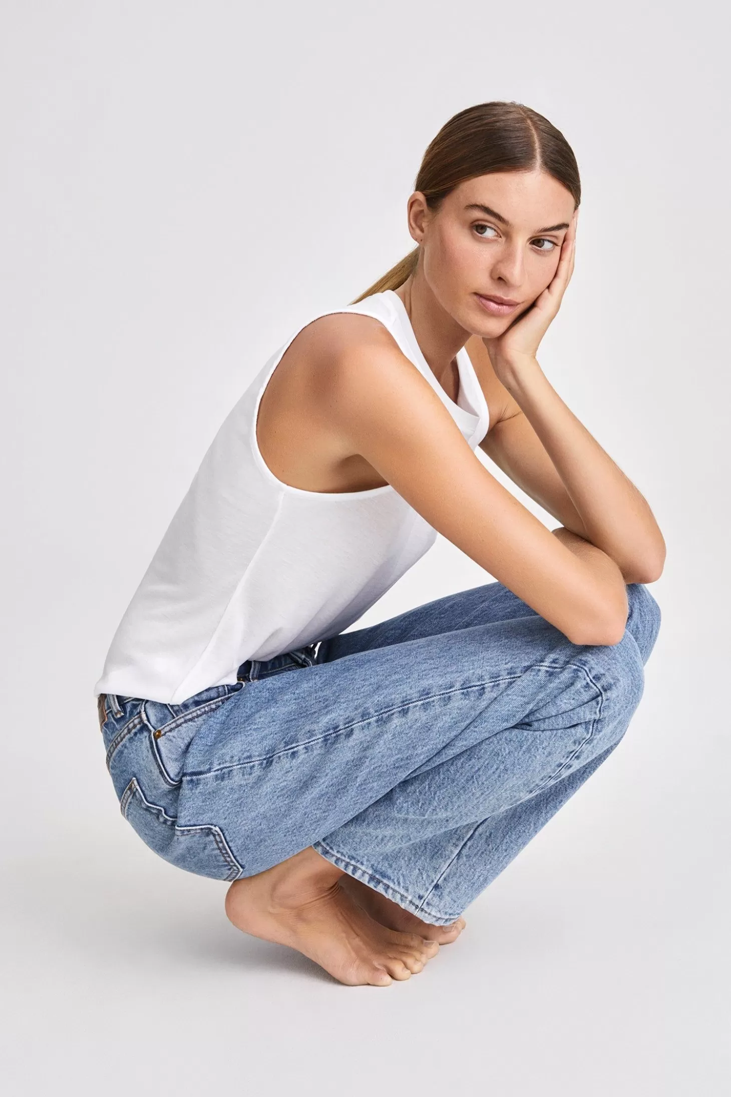 Nicia Is A Basic Top Crafted In A Thin And Ribbed Quality. Nicia Tank Top Has A 90’S Vibe To It And Is Designed With Higher Neckline That Gives It A Classic Sporty Look With Slightly Deep Armholes.