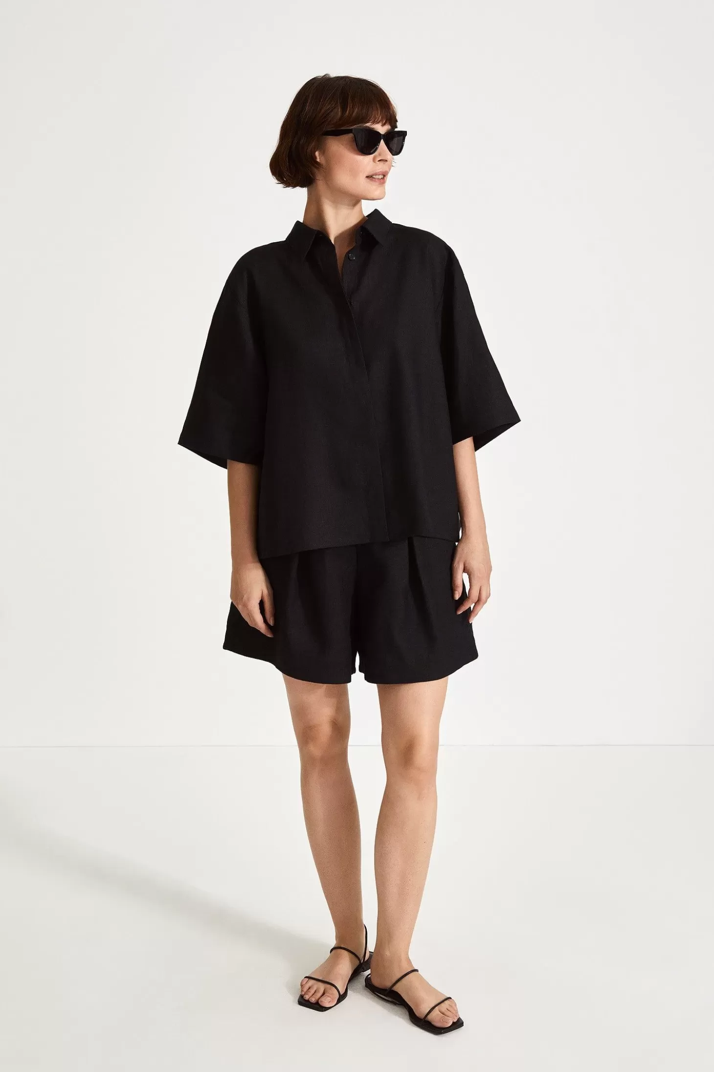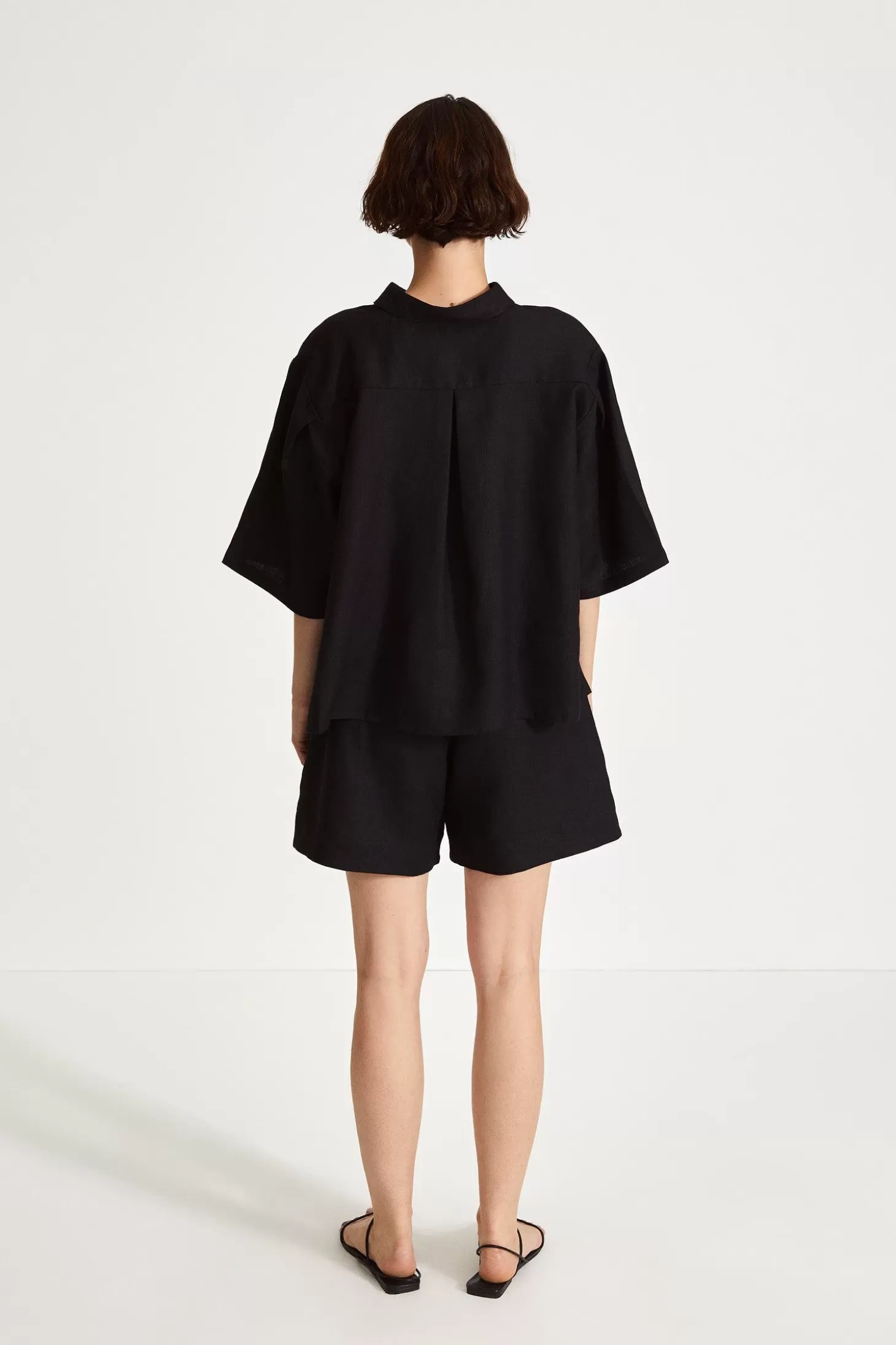 Stefano Shirt Is Crafted From Breathable Linen. This Loose, Slightly Cropped Shirt Boasts A Flattering Flared Silhouette. Featuring Details Such As A Box Pleat At The Back, Elbow-Length Sleeves, And A Classic Collar With Collar Stand. Completed With A Hidden Placket For A Seamless Finish, Stefano Shirt Is A Go-To Piece For Relaxed Sophistication.